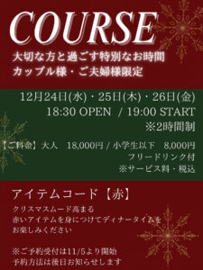 是非、カップル様、ご家族様でご参加いただき、思い出に残る素敵なクリスマスをお過ごしください。