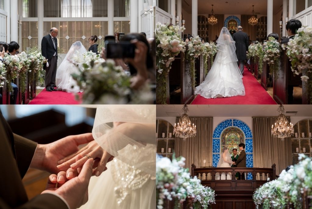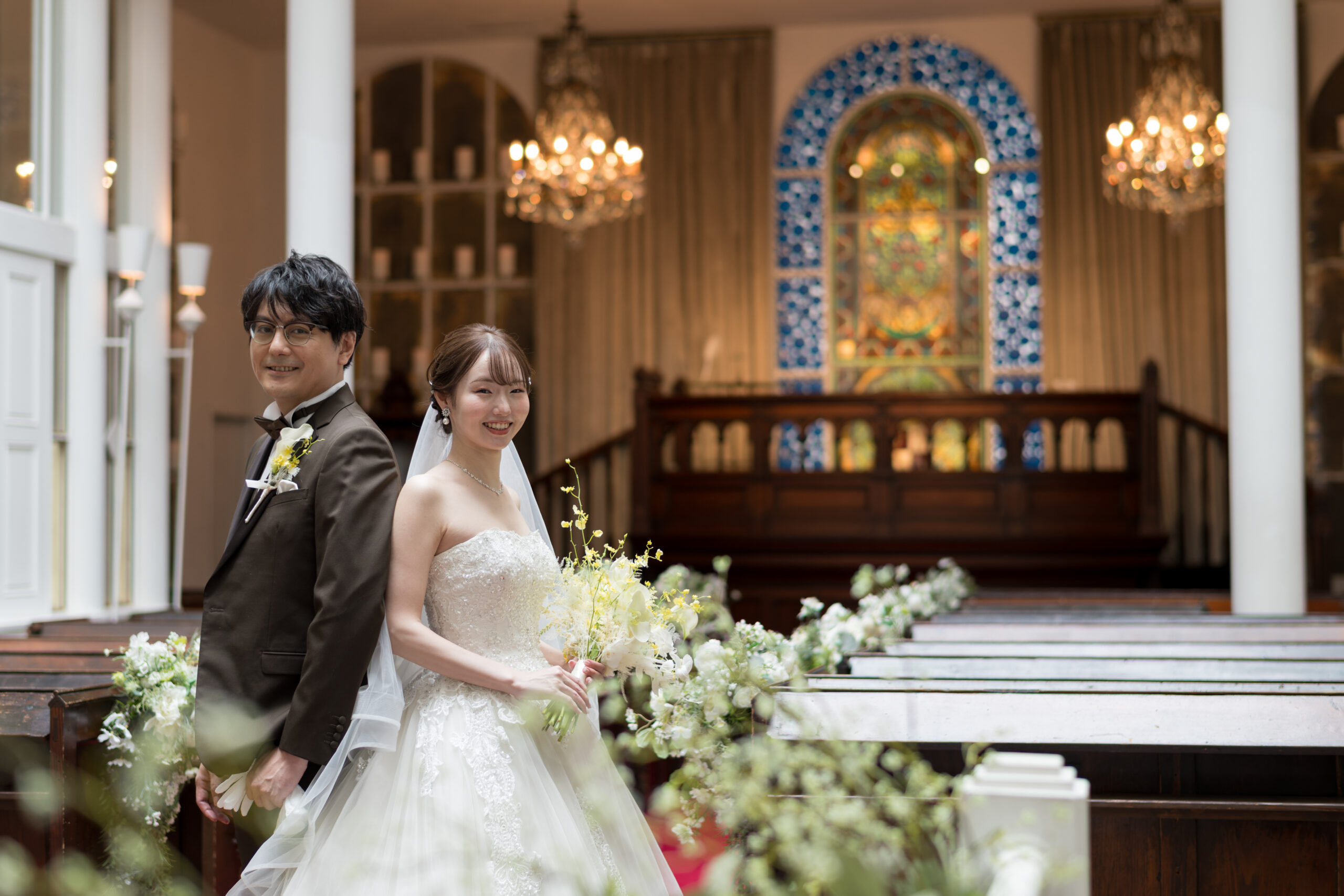 柔らかな緑に日差しが差し込む心地よい日に、ふたりの結婚式は執り行われました。
